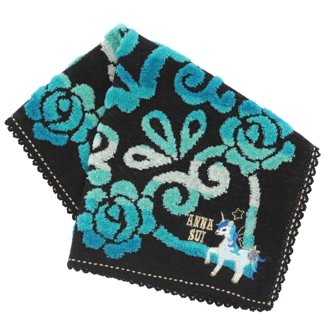 アナ スイ 大判 プリントハンカチ(58cm)干支 ユニコーン ブルー 【アナスイ ANNA SUI】