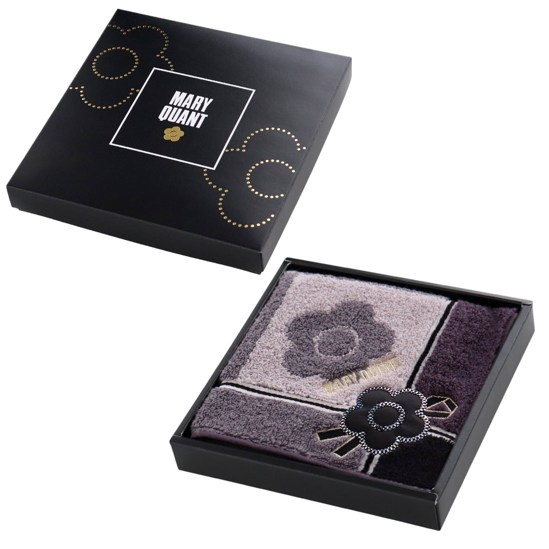 マリークワント 大判 タオルハンカチ(28cm)(パッケージ入り)スパンコール刺繍 レッド 【MARY QUANT マリクワ】