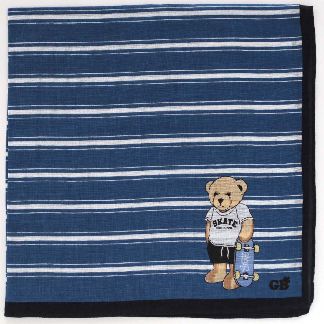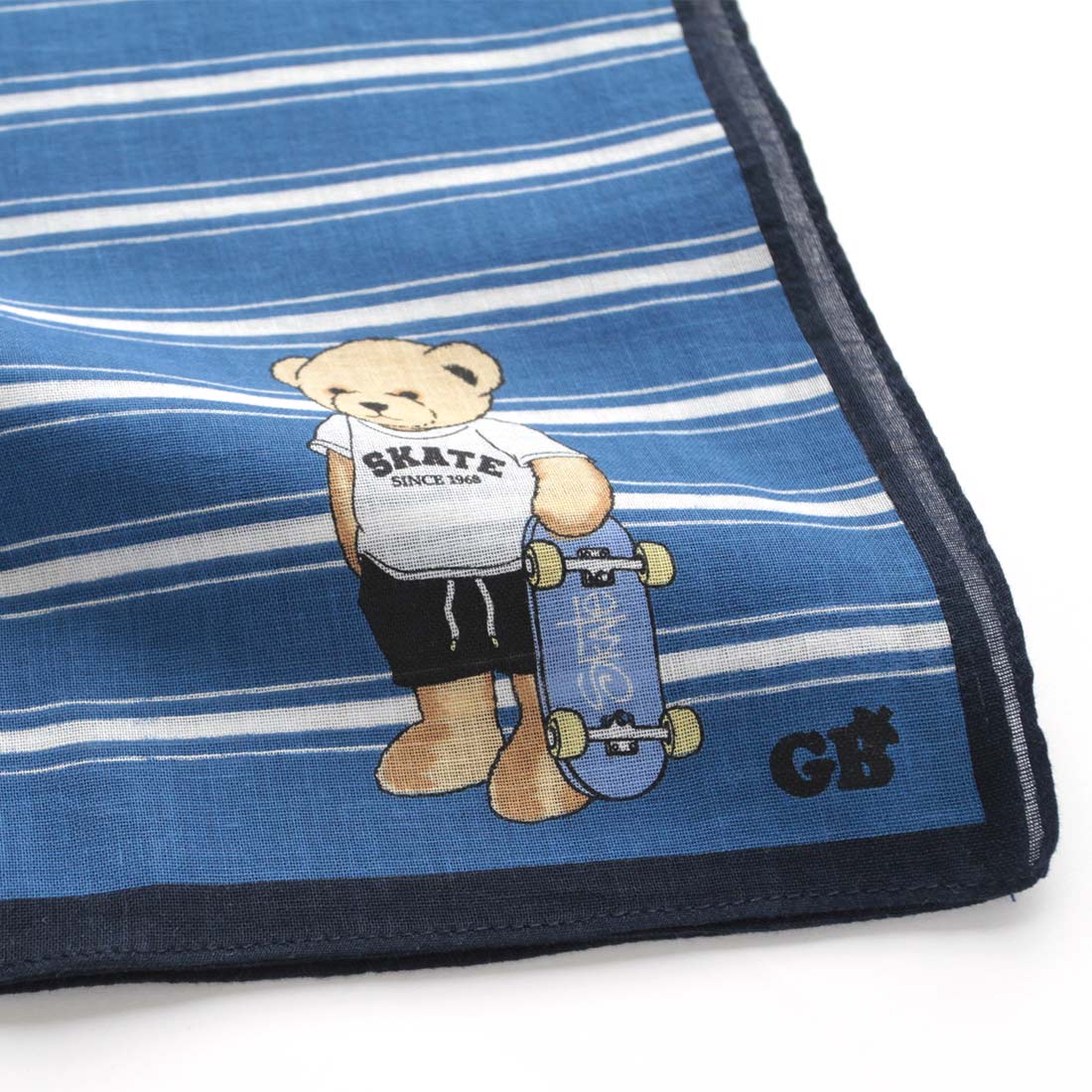 グレート・ブリティッシュ・テディベア プリントハンカチ ボーダー スケーターベア イエロー【Great British Teddy BEAR】