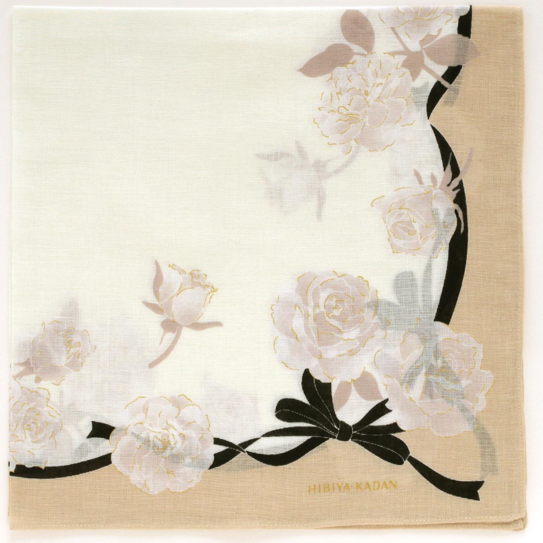 ヒビヤカダン 大判 プリントハンカチ(58cm)四季の花々 アイボリー 【日比谷花壇 HIBIYA-KADAN】