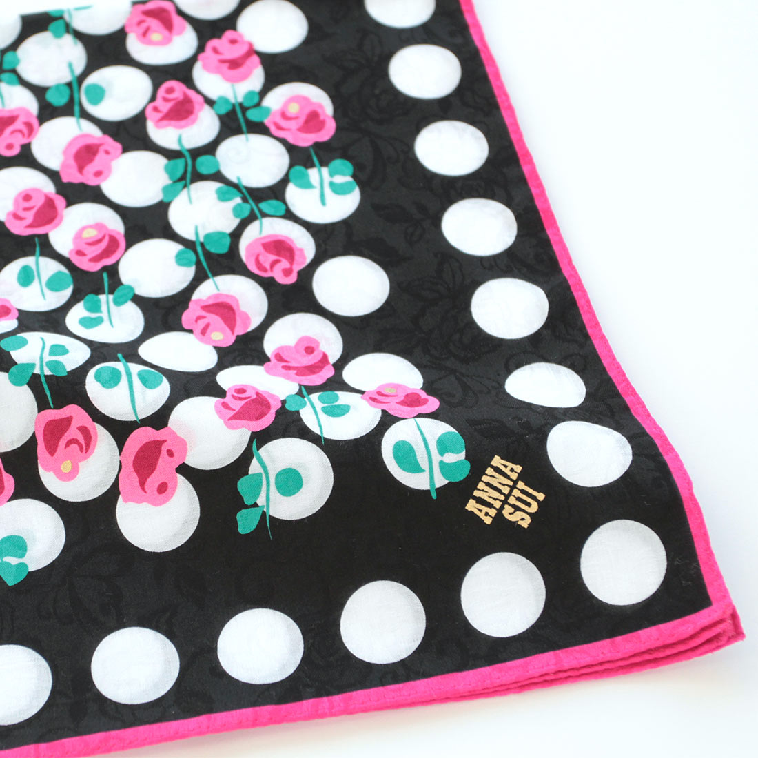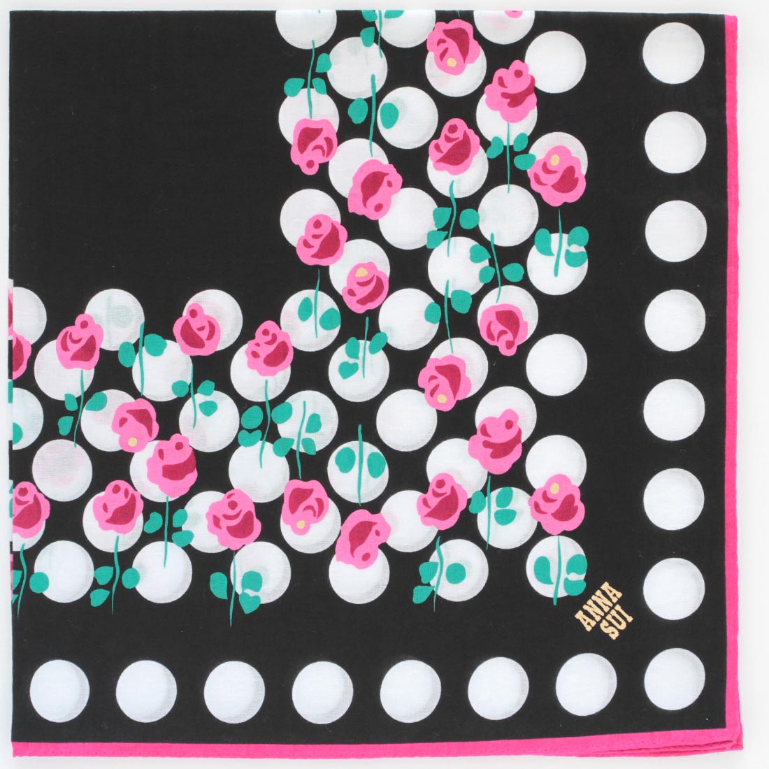 アナ スイ プリントハンカチ リボンローズ柄 ブラック 【アナスイ ANNA SUI】