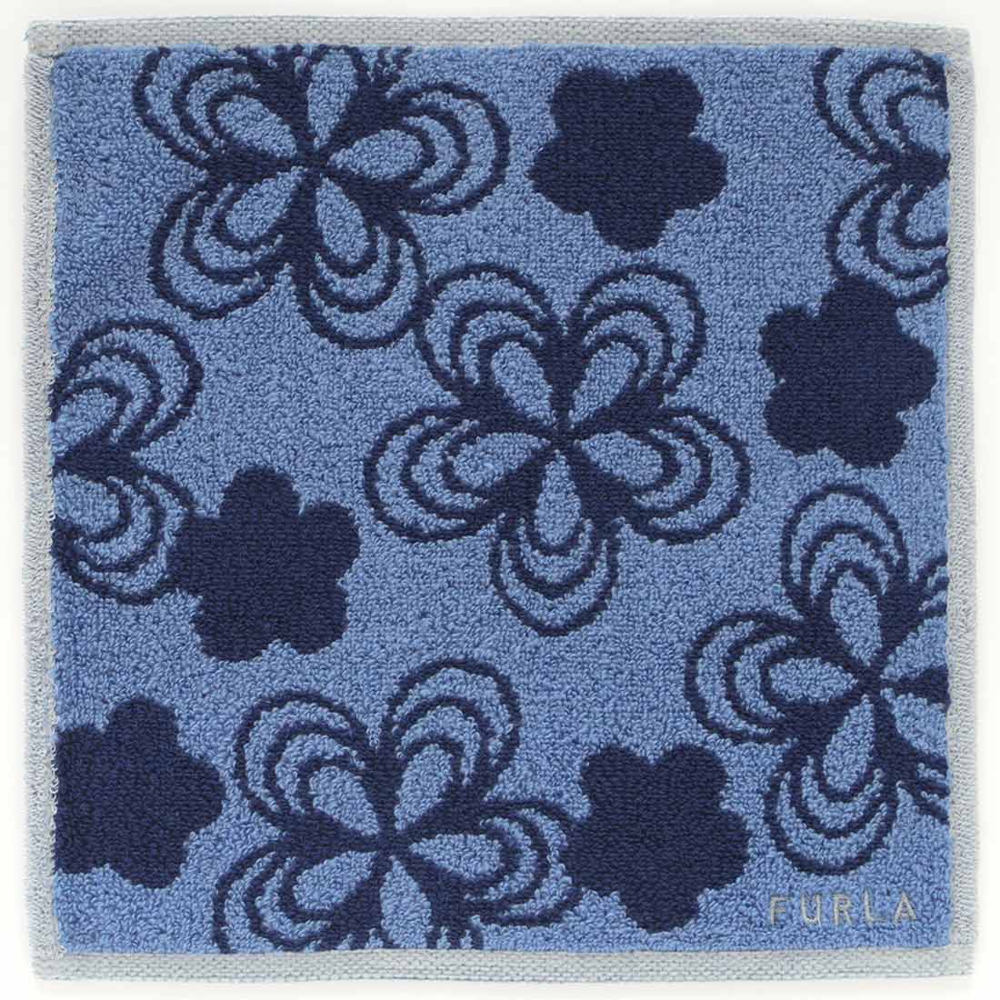 フルラ 大判 タオルハンカチ(28cm)ミモザ ブルー 【FURLA】