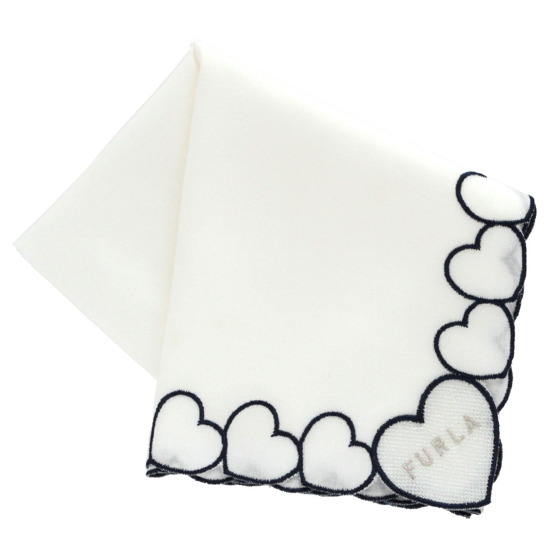 フルラ 刺繍 ハンカチ フレームハート ネイビー 【FURLA】
