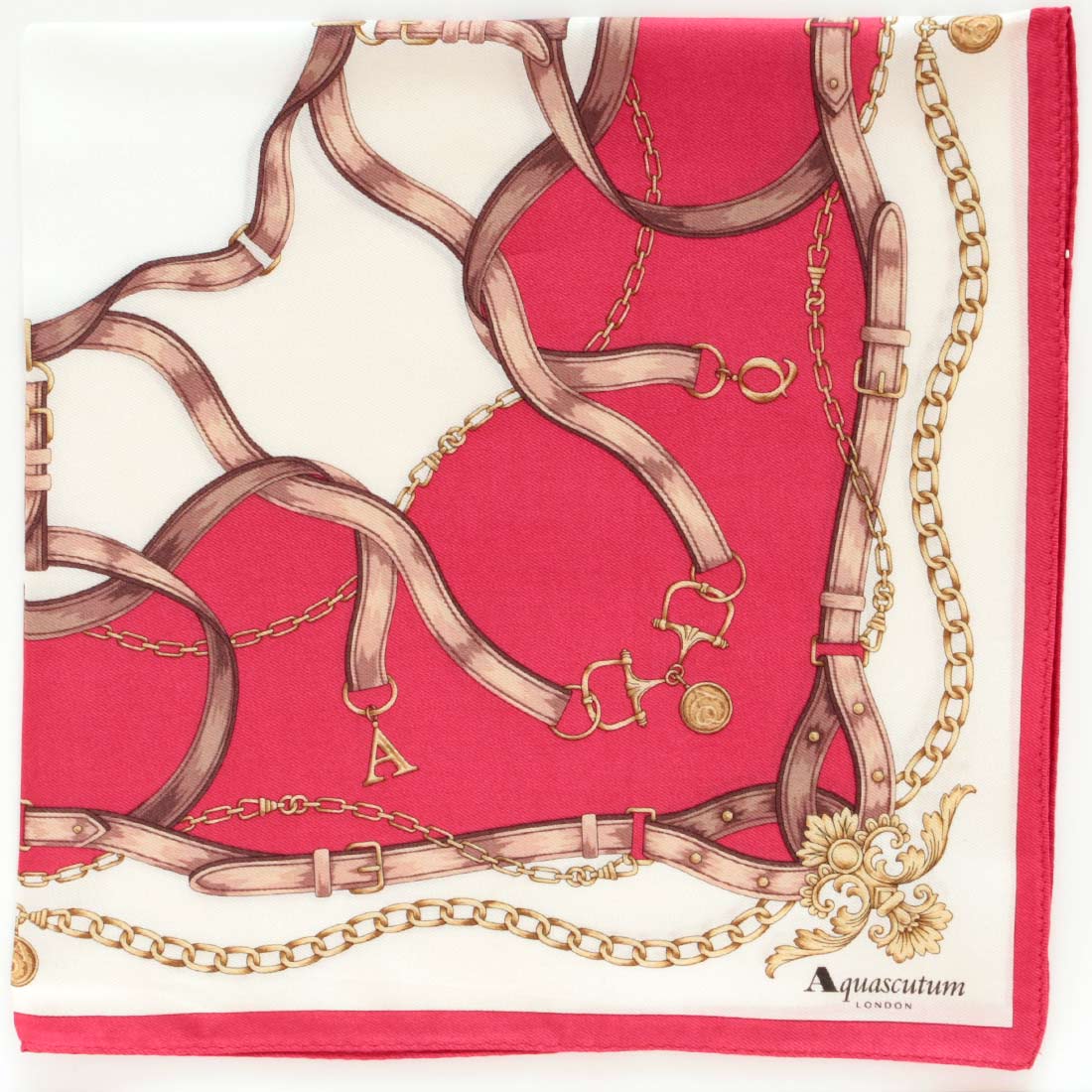 アクアスキュータム 大判 綿シルクハンカチ(58cm)ベルト柄&メタルモチーフ ピンク 【Aquascutum】