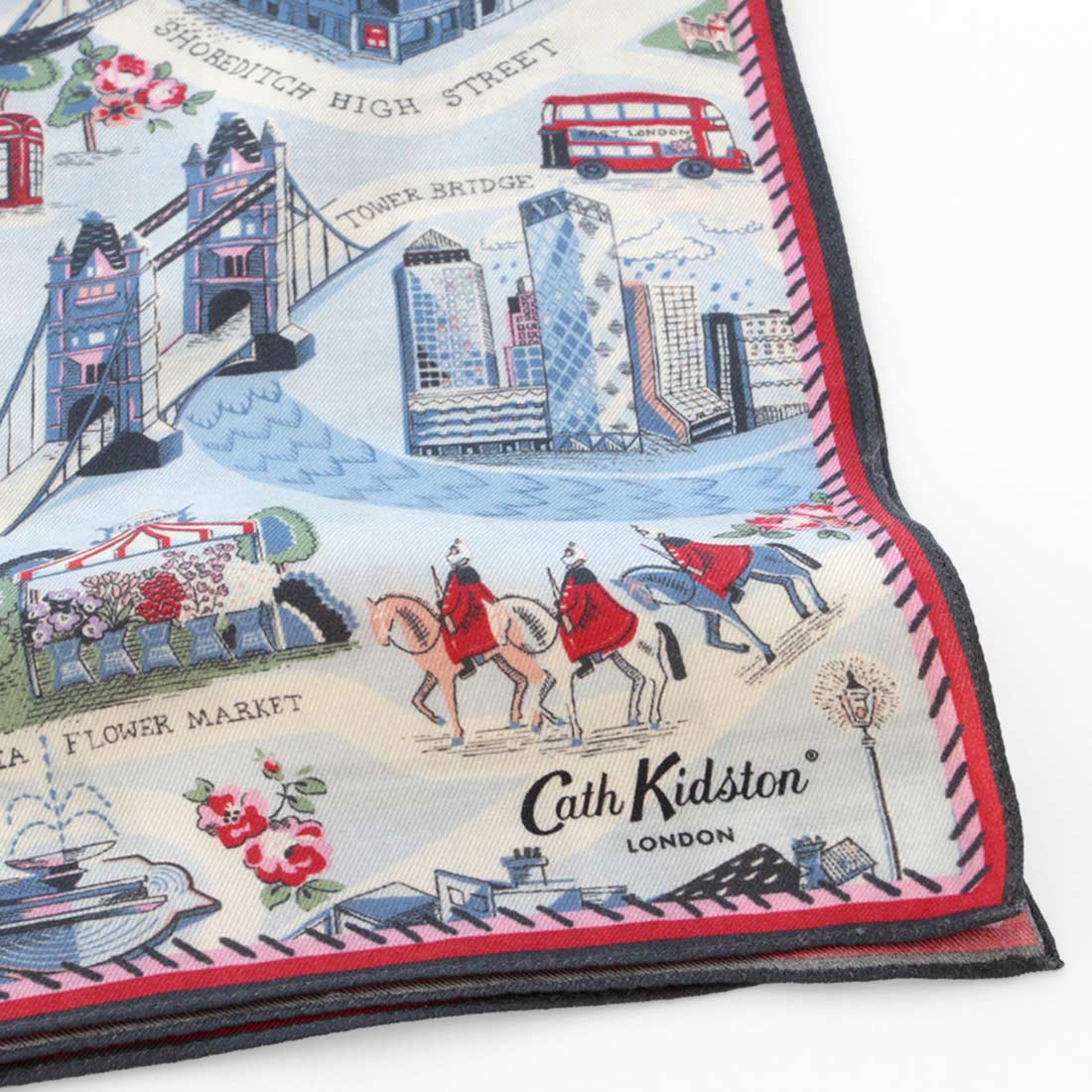 キャス キッドソン プリントハンカチ ストライプ 桜柄 ブルー【Cath Kidston】