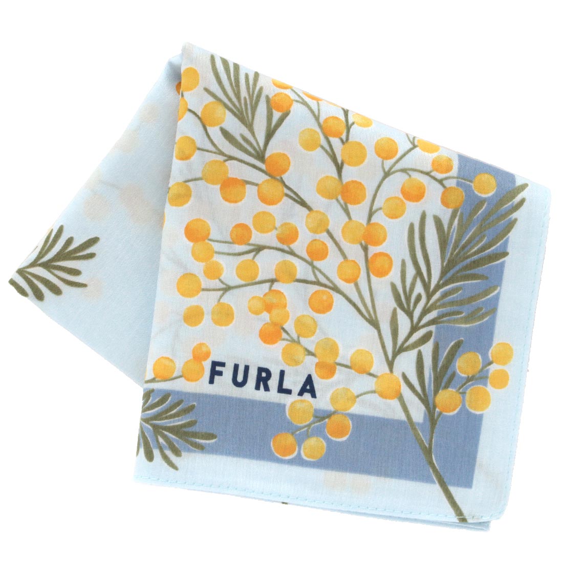 フルラ 大判 タオルハンカチ(28cm)ミモザ ブルー 【FURLA】