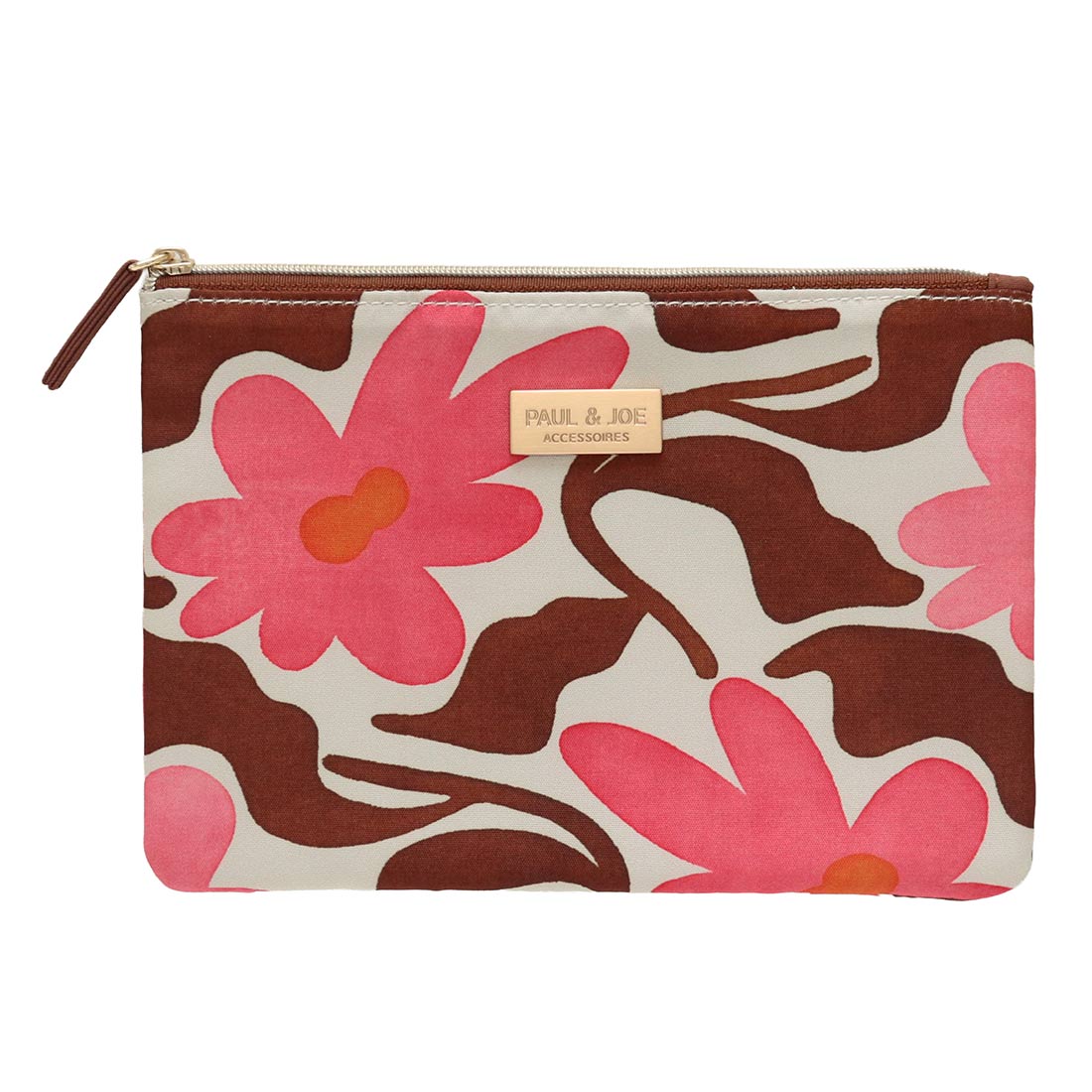 ポール&ジョー アクセソワ 天ファスナーポーチ グラフィカルフラワー ブラウン 【PAUL&JOE ポールアンドジョー】