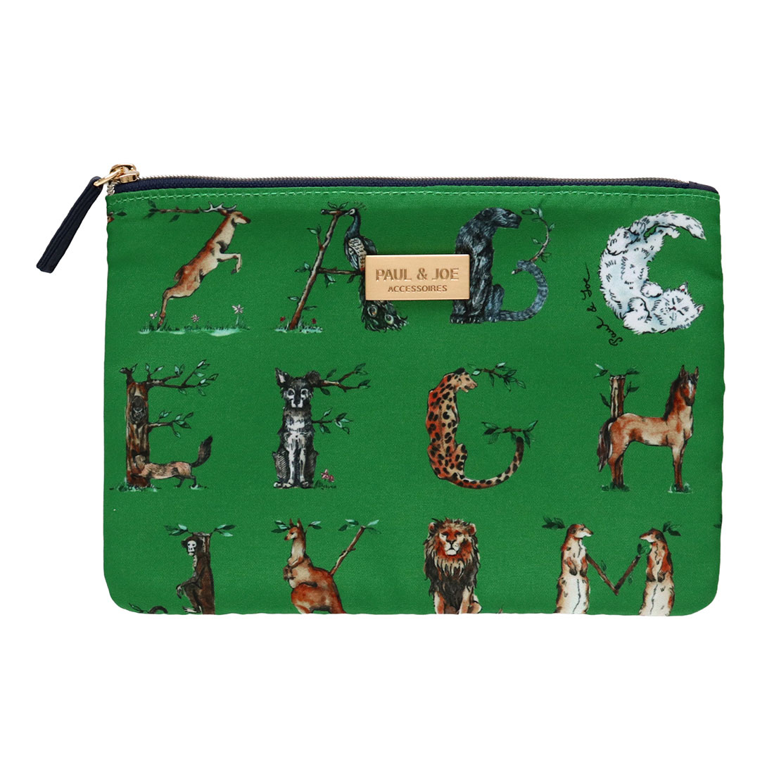 ポール&ジョー アクセソワ 天ファスナーポーチ 動物アルファベット グリーン 【PAUL&JOE ポールアンドジョー】