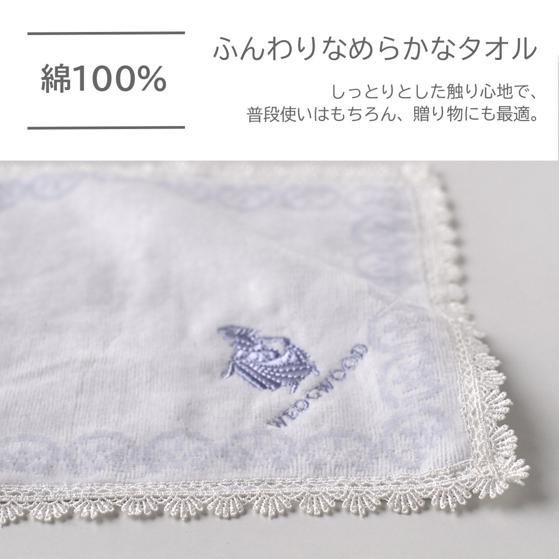 ウェッジウッド 大判 タオルハンカチ(28cm)ジャスパー ホワイト 【WEDGWOOD】