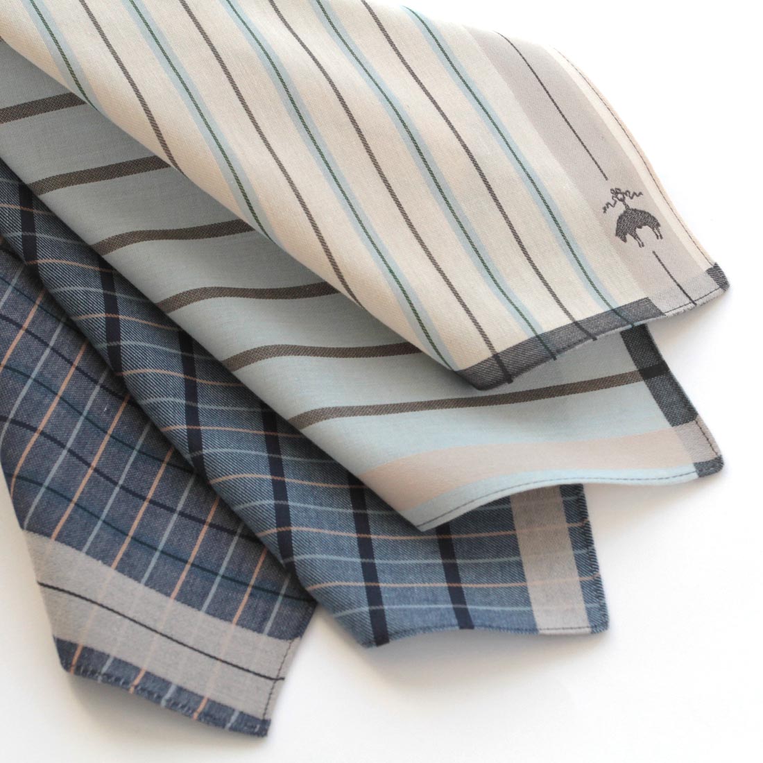 ブルックス ブラザーズ イージーケア ハンカチ ストライプ&チェック ブルー 【Brooks Brothers】