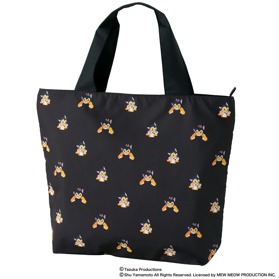 キャットアート ファスナー付 エコバッグ/マイバッグ(パッケージ入り)ブラック・ニャック グレー【CAT ART】