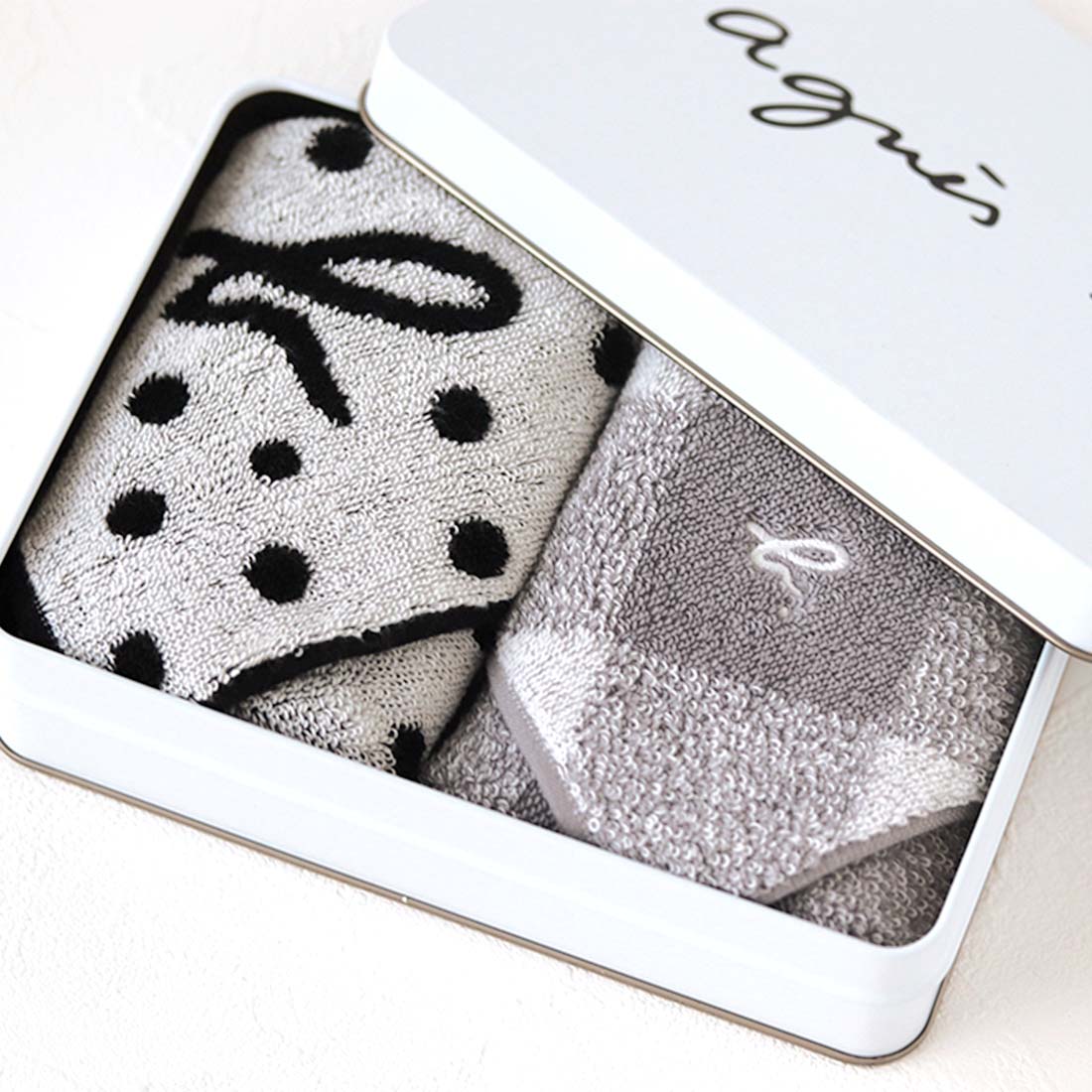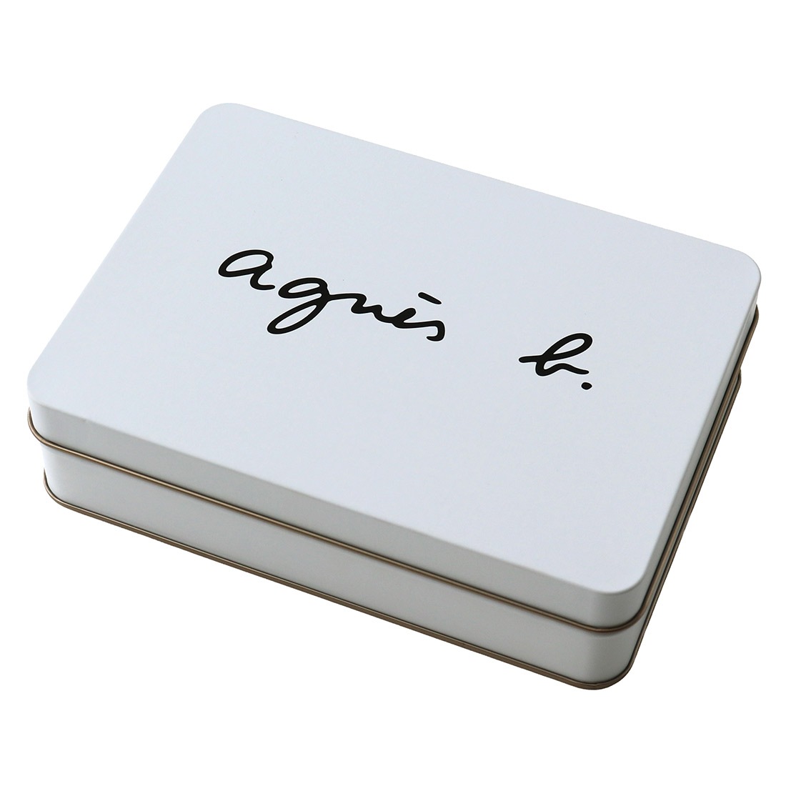 アニエスベー タオルハンカチ ドット&b.ロゴ(缶パッケージ入り ロゴ) ホワイト 【agnes b】