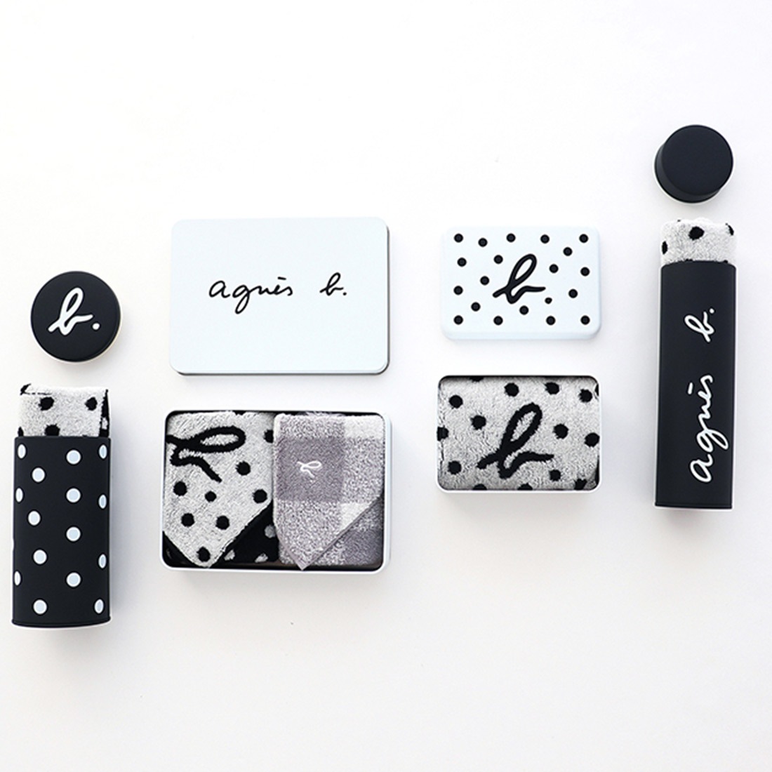 アニエスベー タオルハンカチ ドット&b.ロゴ(筒形缶パッケージ入り ロゴ) ブラック 【agnes b】